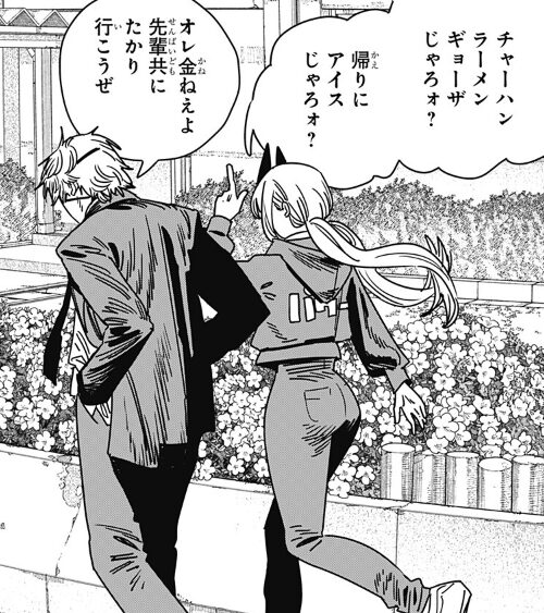 デンジはアサの姿を見送りながらパワーとともに学校を去りました