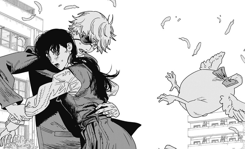 ニワトリの悪魔を見てデンジはアサの元に駆け寄ります